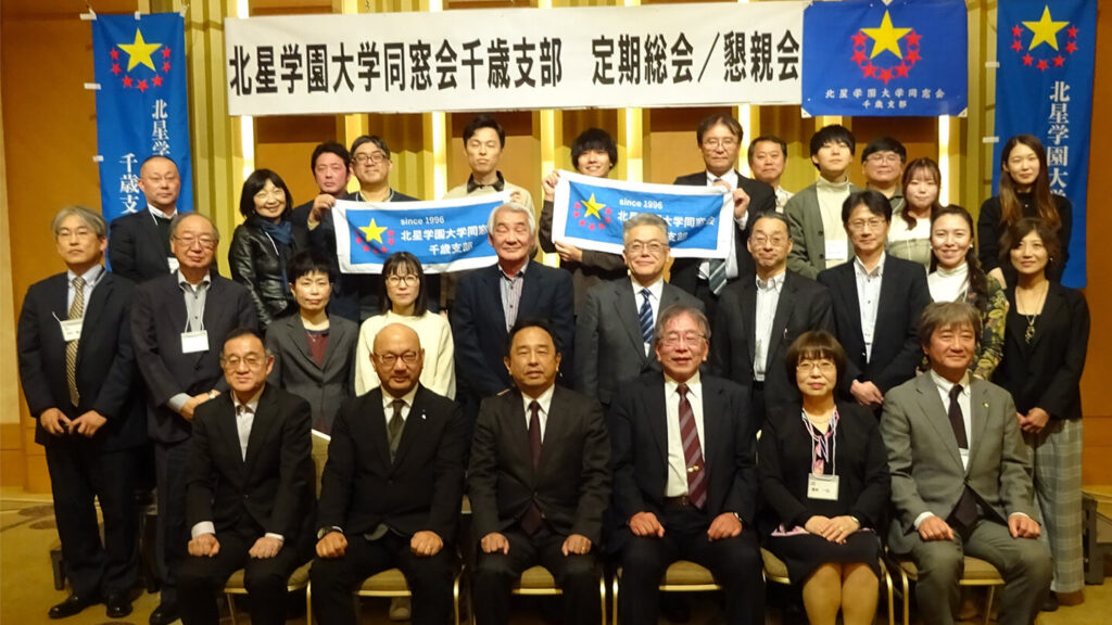 千歳支部は、2025年に設立30周年を迎えました。毎年、会員相互の親睦を深めるため、定期総会後の懇親会をはじめ、新春ボーリング大会、真冬の魚介類&焼肉大感謝祭、楽しい日帰り温泉ツアーなどを開催しているほか、北星学園大学廻の皆さんとの交流活動も行っています。