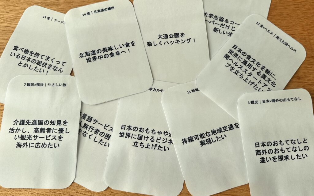 特に人気だったのは「北海道の食を世界に広げたい」というカード。国際経営を学んだのち、韓国やシンガポールに渡り、現地バイヤーとの交渉をして行くビジネスストーリーです。