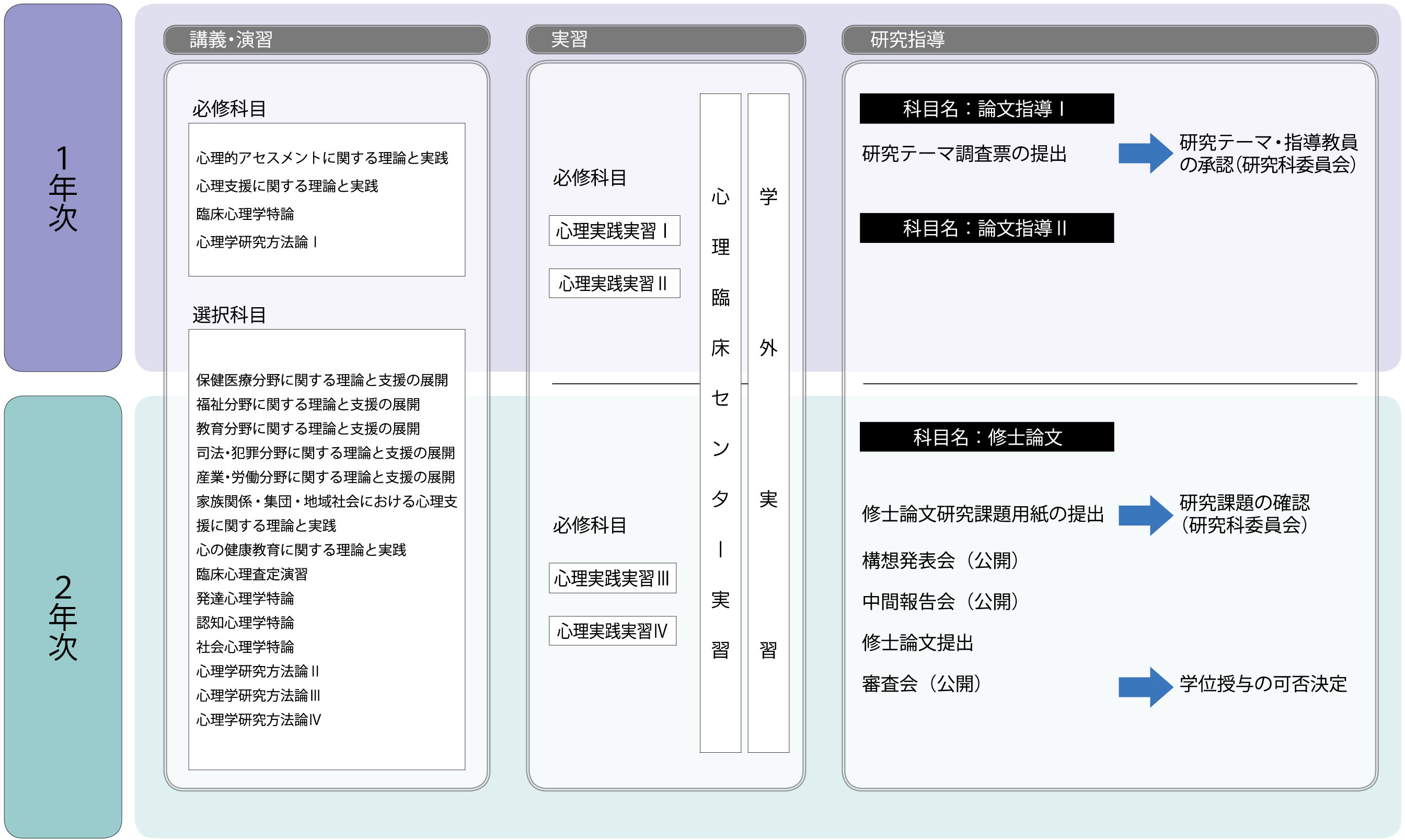 また、社会福祉学専攻(修士課程)では認定社会福祉士研修認証科目を開講し、臨床心理学専攻(修士課程)では公認心理師受験資格対応カリキュラムを展開しています。