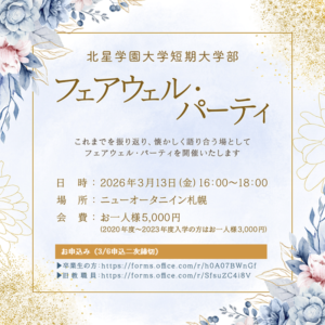 対象:北星学園女子短期大学・北星学園大学短期大学部を卒業された方