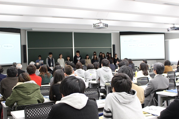 まず第1セッションとして、学習サポートセンター主催「『学び』のための学生プロジェクト助成制度」(※1)に採択された、「民事訴訟法合同ゼミナール」と「民法教育in大谷地東小学校」の両プロジェクトの成果発表が行われました。