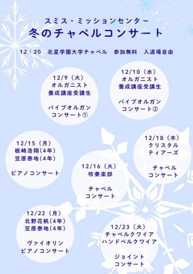 スミス・ミッションセンター「冬のチャペルコンサート」のお知らせ