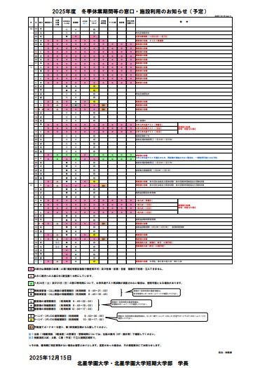 2025年度 冬季休業期間等の窓口・施設利用のお知らせ(予定)
