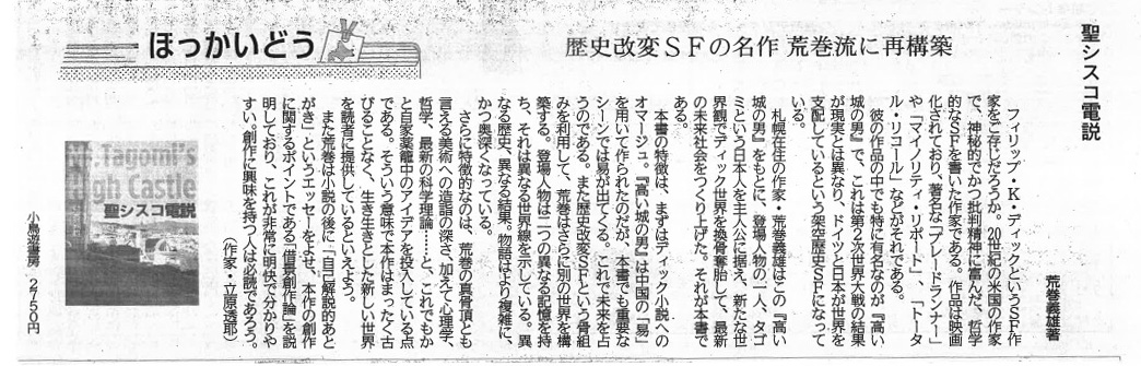 文学部 山本 範子 教授による書評が1月25日の北海道新聞(朝刊)の「ほっかいどうの本」のコーナーに掲載されました(山本教授は立原透耶の筆名で執筆しています)。