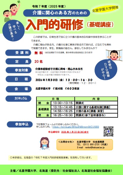 2026年1月30日、本学教職員及び学生を対象に「介護に関心のある方のための入門的研修(基礎講座)」を開催しました