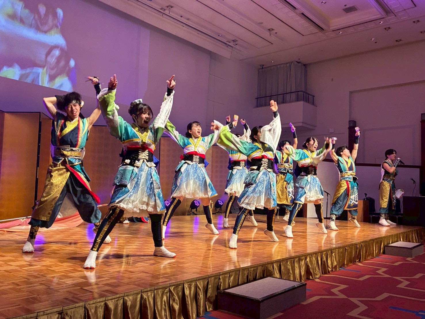 2026年2月4日に開催された「札幌・大田姉妹都市提携15周年記念レセプション」において、本学の演舞同好会(北星学園大学~廻~)の学生達が祝賀演目としてよさこい演舞を披露する機会を頂きました。当日は秋元克広札幌市長、イ・ジャンウ韓国・大田広域市長をはじめとして、数多くの来賓の皆様の前でよさこいを披露させて頂きました。2025年に札幌市と韓国・大田広域市の姉妹都市提携15周年を迎えたことを記念して、昨年8月に札幌市長訪問団らとともに演舞同好会の学生達が青年訪問団として帯同させて頂いた縁もあり、今回このような晴れ舞台へ声をかけて頂きました。