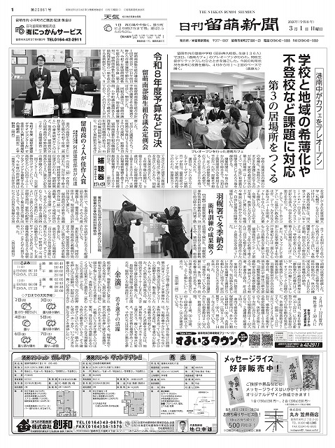 学校の教室以外にも「第三の居場所」として会話やゲームを通じて充実した時間を過ごしてもらおうと「港南カフェ」(留萌市立港南中学校内)が2月26日にプレオープンし、スタッフとして参加した本学生のコメントが北海道新聞及び日刊留萌新聞で掲載されました。