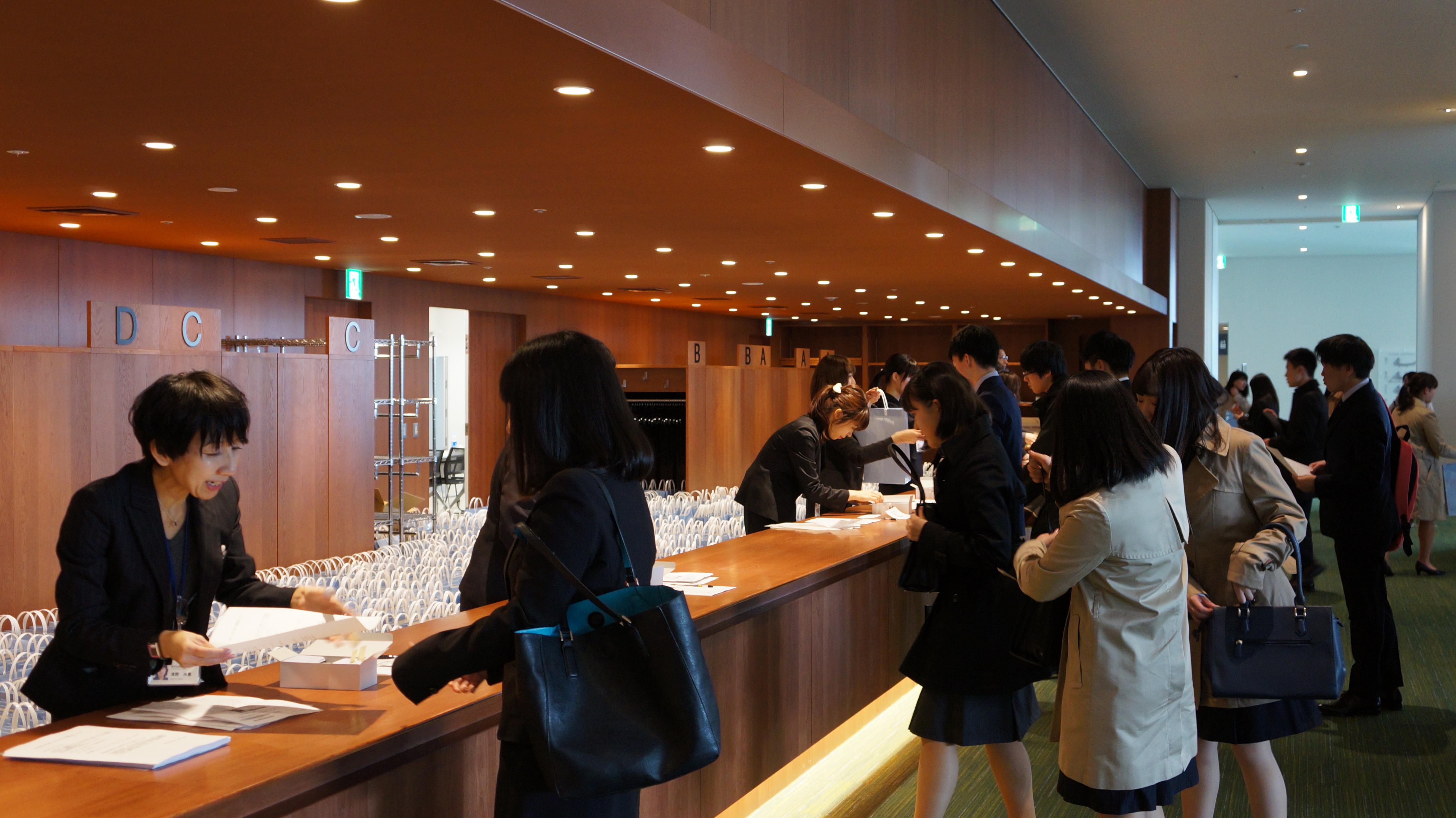 4月1日からオリエンテーションが始まり、既に学生生活をスタートしていることもあり、新入生たちは、入学式終了後友人同士で記念撮影を行っていました。真新しいスーツを着た新入生たちは、どの学生も期待と希望に満ち溢れた様子でした。