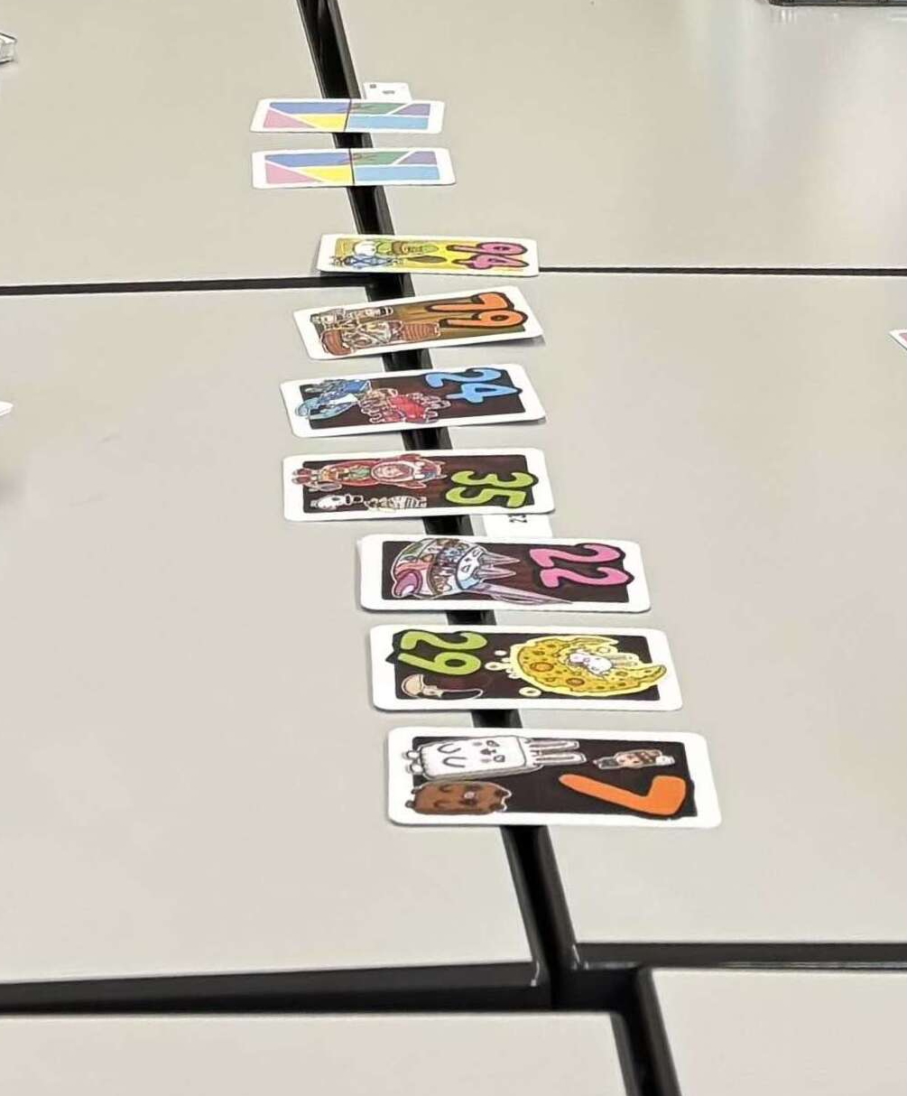 ルールは、配られた数字を直接言わずにお題に合わせて「たとえ」で表現し、全員で協力して小さい順に並べるというもの。やってみるとシンプルで、予想し合う中で会話が弾み、笑いも絶えません。今回のお題は「無人島に持って行くもの」や「グッとくる行動」でした。