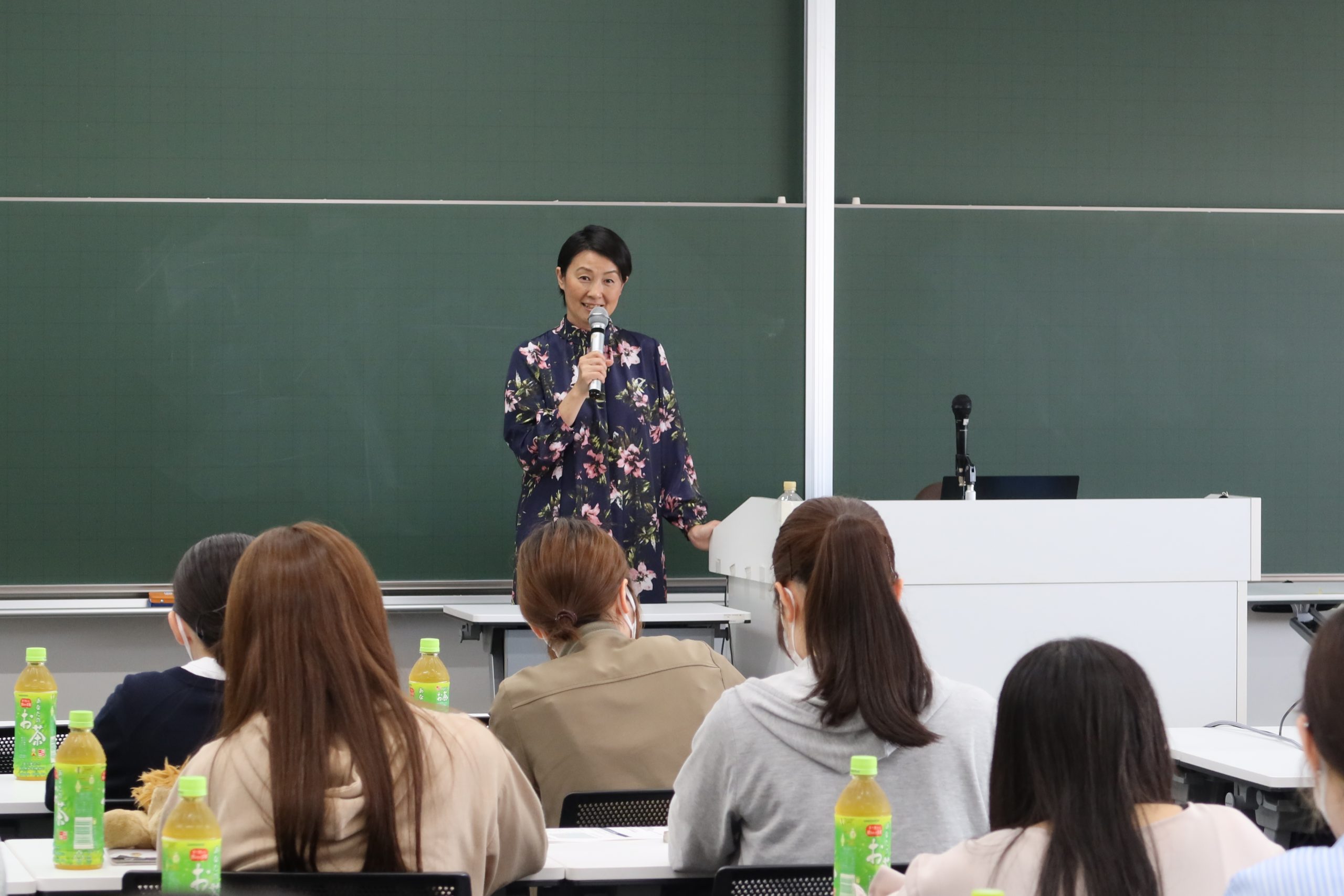 授業には英文学科 森越教授の「総合講義ホスピタリティ」受講生および生活創造学科 山本専任講師の「生活学基礎演習Ⅱ」受講生が参加しました。