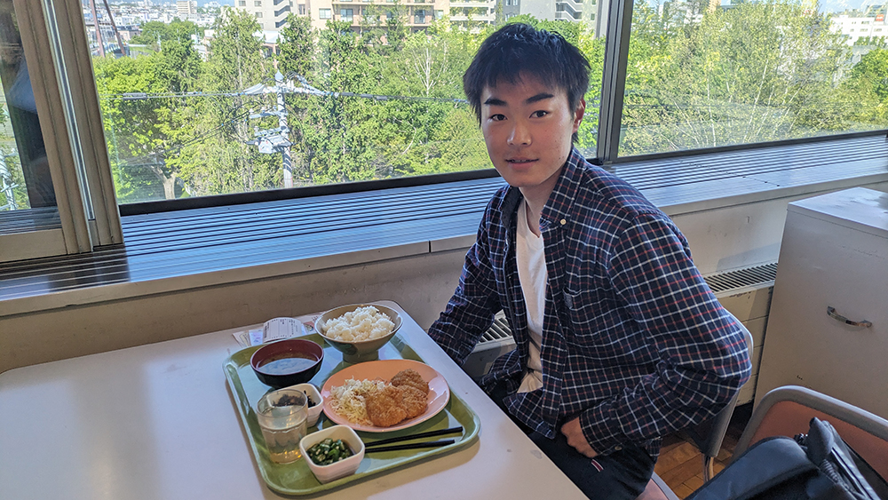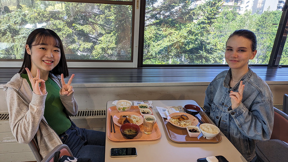 インタビューは、北星学園大学センター棟1階の国際ラウンジで行われました。質問は主に北海道の食文化に関するものであり、時折日本語を交えつつも主に英語でコミュニケーションをとりました。