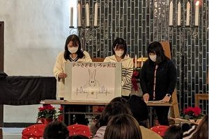 「北星チャペルでクリスマス」では、地域の小学生と保護者のみなさまをお招きし、クリスマスリースづくりやスライドを用いたかみしばいの鑑賞、クリスマスプレゼント等を行いました。