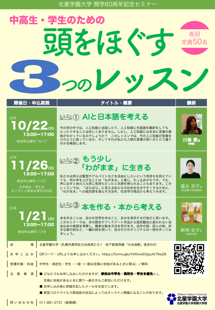 お問合先:北星学園大学総務課 011-891-2731